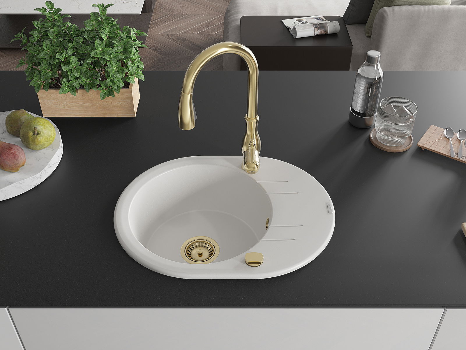 De gootsteen is gemaakt van hoogwaardig graniet. Het vormt een elegante en vooral praktische aanvulling op elke keuken, ongeacht de stijl. De hoge kwaliteit en duurzaamheid van graniet zorgen voor jarenlang gebruik.