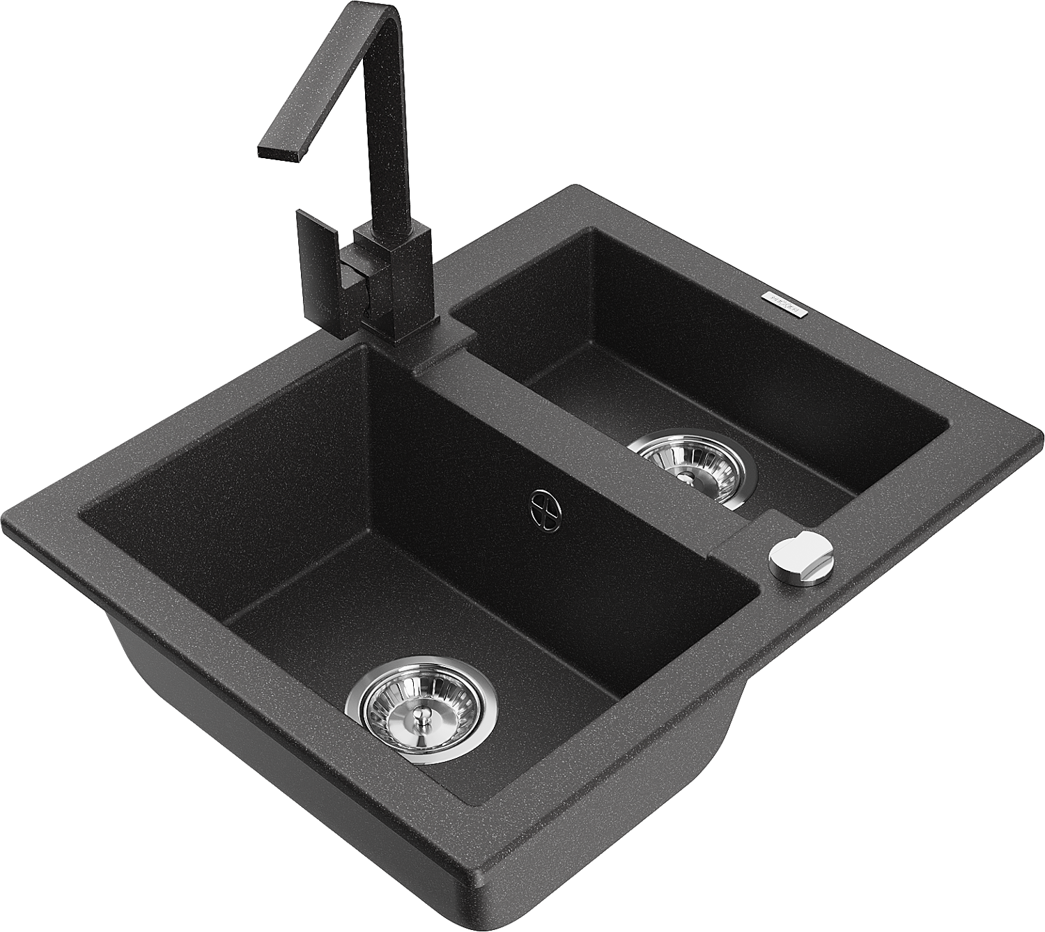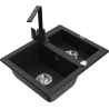 Mexen Carlos granieten gootsteen 1,5-komor met keukenmengkraan Rita, zwart gespikkeld - 6518-76-670300-76