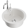 Het oppervlak van de gootsteen is bestand tegen vlekken en verkleuringen, waardoor het gemakkelijk schoon te houden is en zijn kleur behoudt gedurende een lange gebruiksperiode. Een esthetische en praktische aanvulling op elke keuken.
