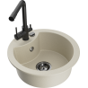 Het oppervlak van de gootsteen is bestand tegen vlekken en verkleuringen, waardoor het gemakkelijk schoon te houden is en zijn kleur behoudt gedurende een lange gebruiksperiode. Een esthetische en praktische aanvulling op elke keuken.