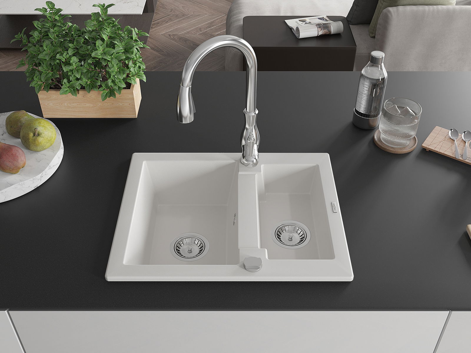 De gootsteen is gemaakt van hoogwaardig graniet. Het vormt een elegante en vooral praktische aanvulling op elke keuken, ongeacht de stijl. De hoge kwaliteit en duurzaamheid van graniet zorgen voor jarenlang gebruik.