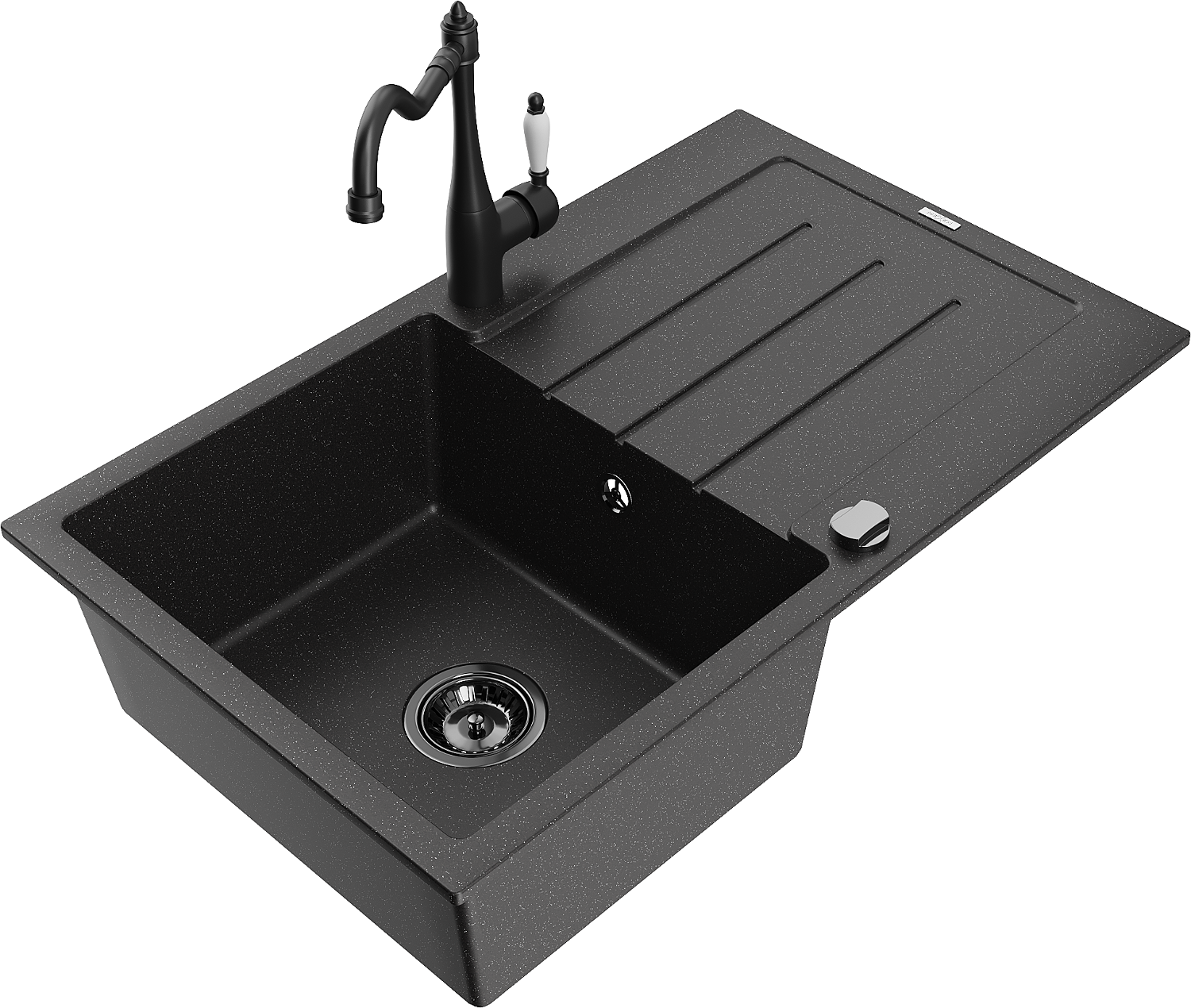Mexen Bruno granieten spoelbak met 1 bak en afdruipblad en Carla keukenkraan, zwart/zilver metallic - 6513-73-670700-70-B
