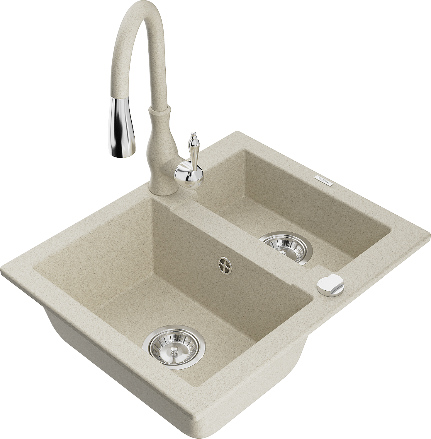 Mexen Carlos granieten gootsteen 1,5-kamer met keukenmengkraan Savita, beige - 6518-69-672601-69