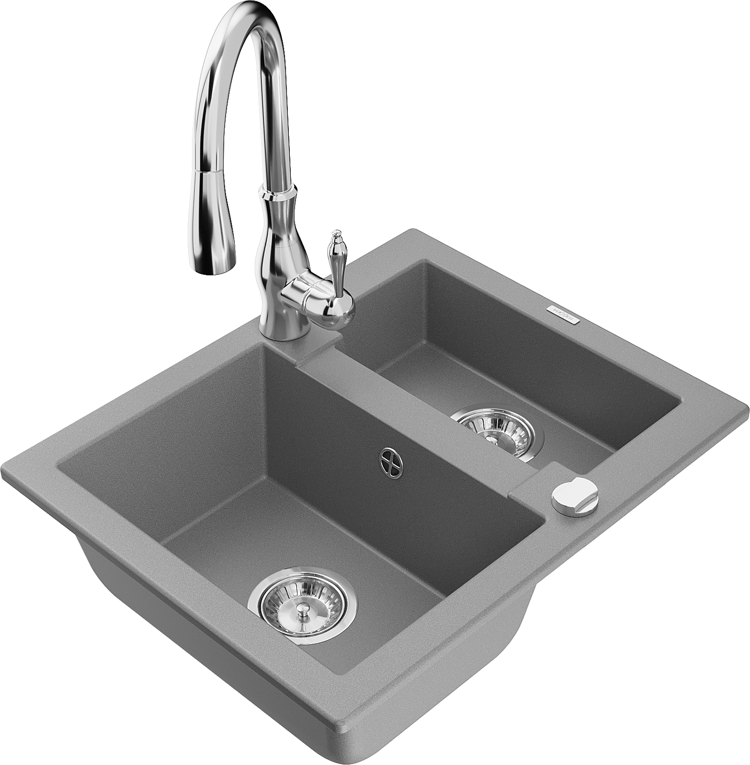 Mexen Carlos granieten spoelbak 1,5-komor met keukenmengkraan Savita, grijs - 6518-71-672601-00