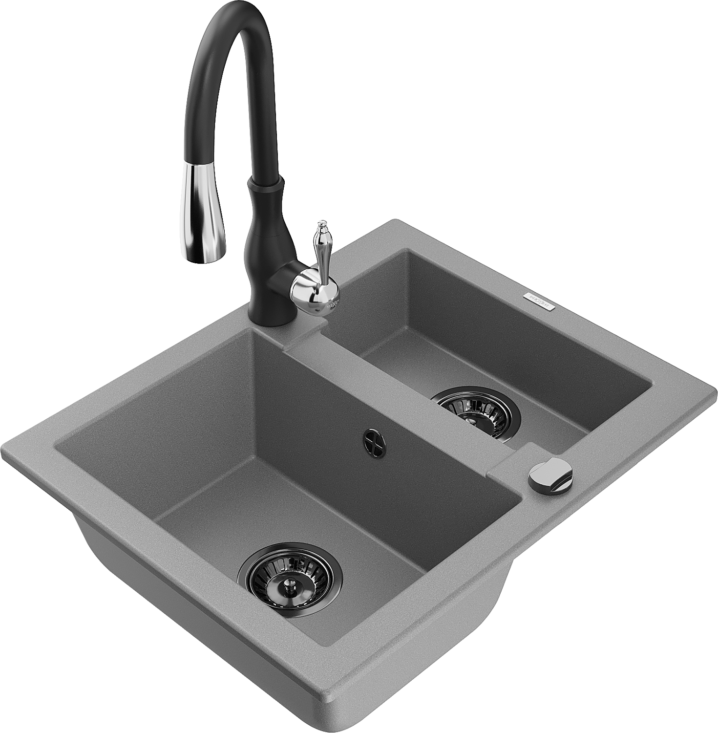 Mexen Carlos granieten gootsteen 1,5-komoriëel met keukenkraan Savita, grijs - 6518-71-672601-70-B
