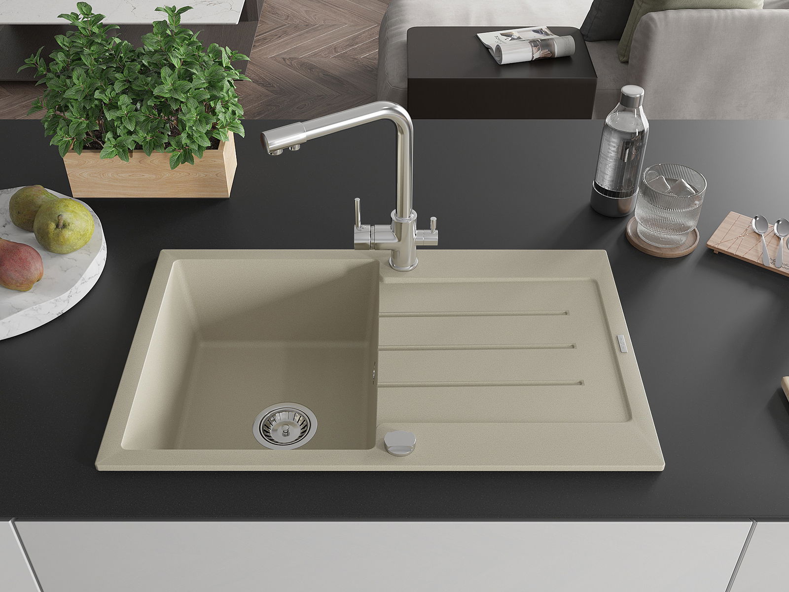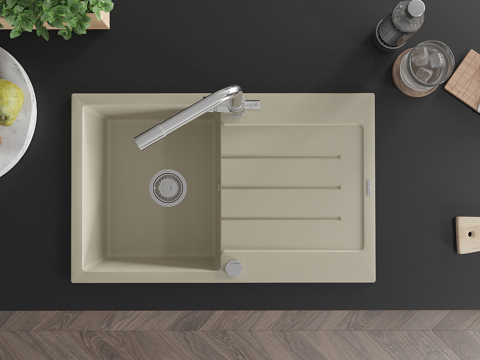De gootsteen is gemaakt van hoogwaardig graniet. Het vormt een elegante en vooral praktische aanvulling op elke keuken, ongeacht de stijl. De hoge kwaliteit en duurzaamheid van graniet zorgen voor jarenlang gebruik.