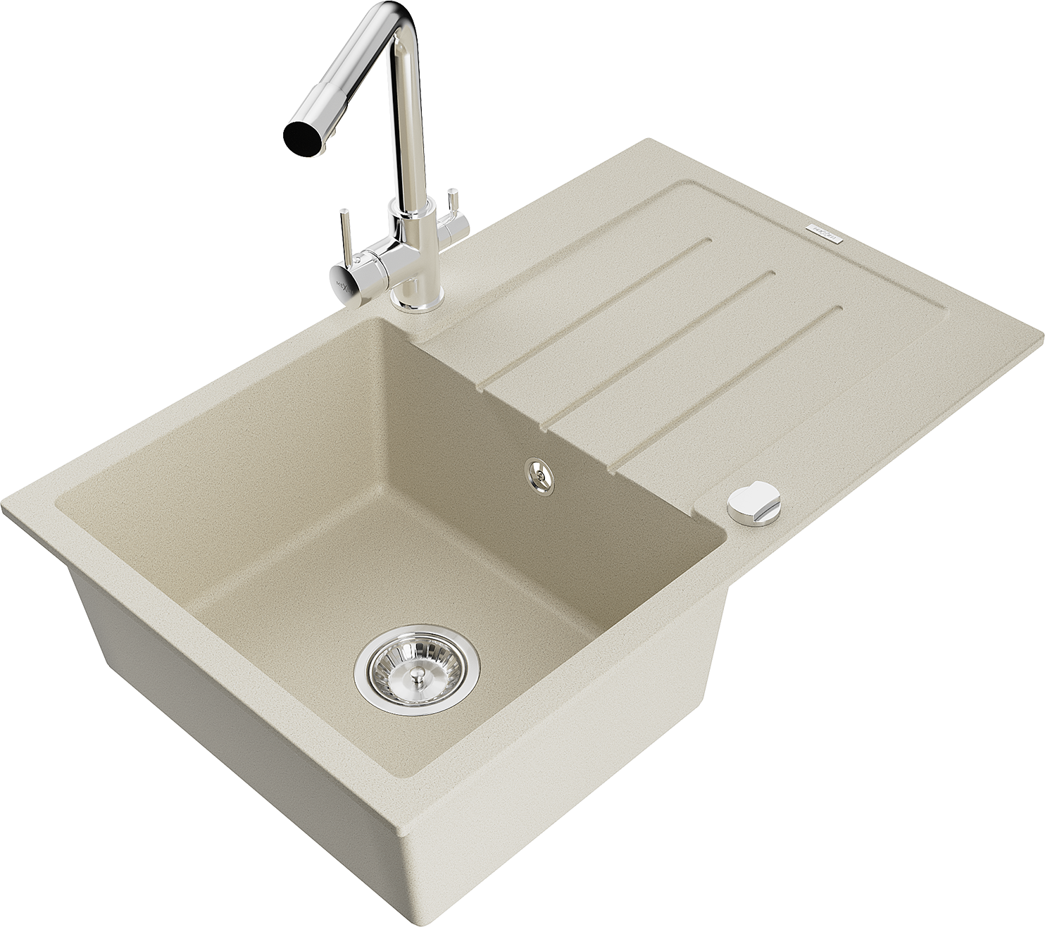 Mexen Bruno granieten gootsteen met 1 kom met afdruiprek en Duero keukenmengkraan, beige - 6513-69-671600-00