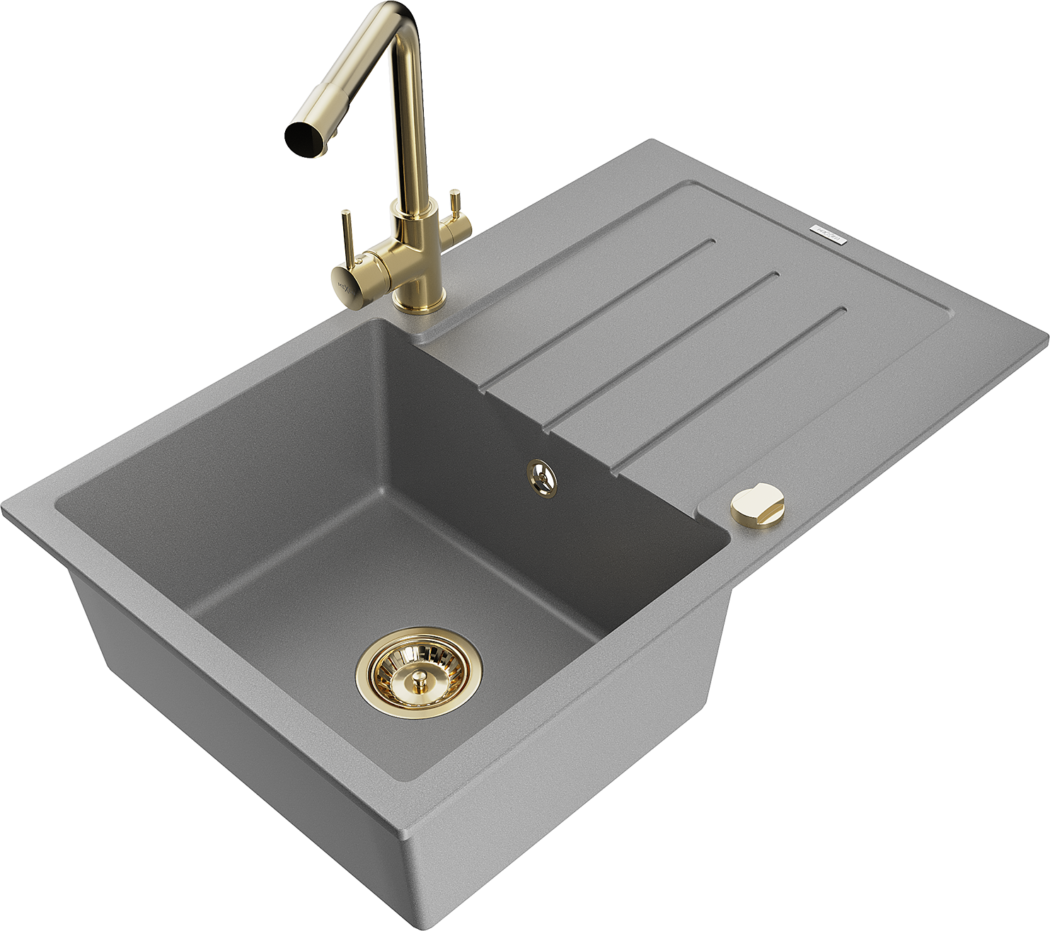 Mexen Bruno granieten spoelbak 1-kompeer met afdruiprek en keukenmengkraan Duero, grijs - 6513-71-671600-50