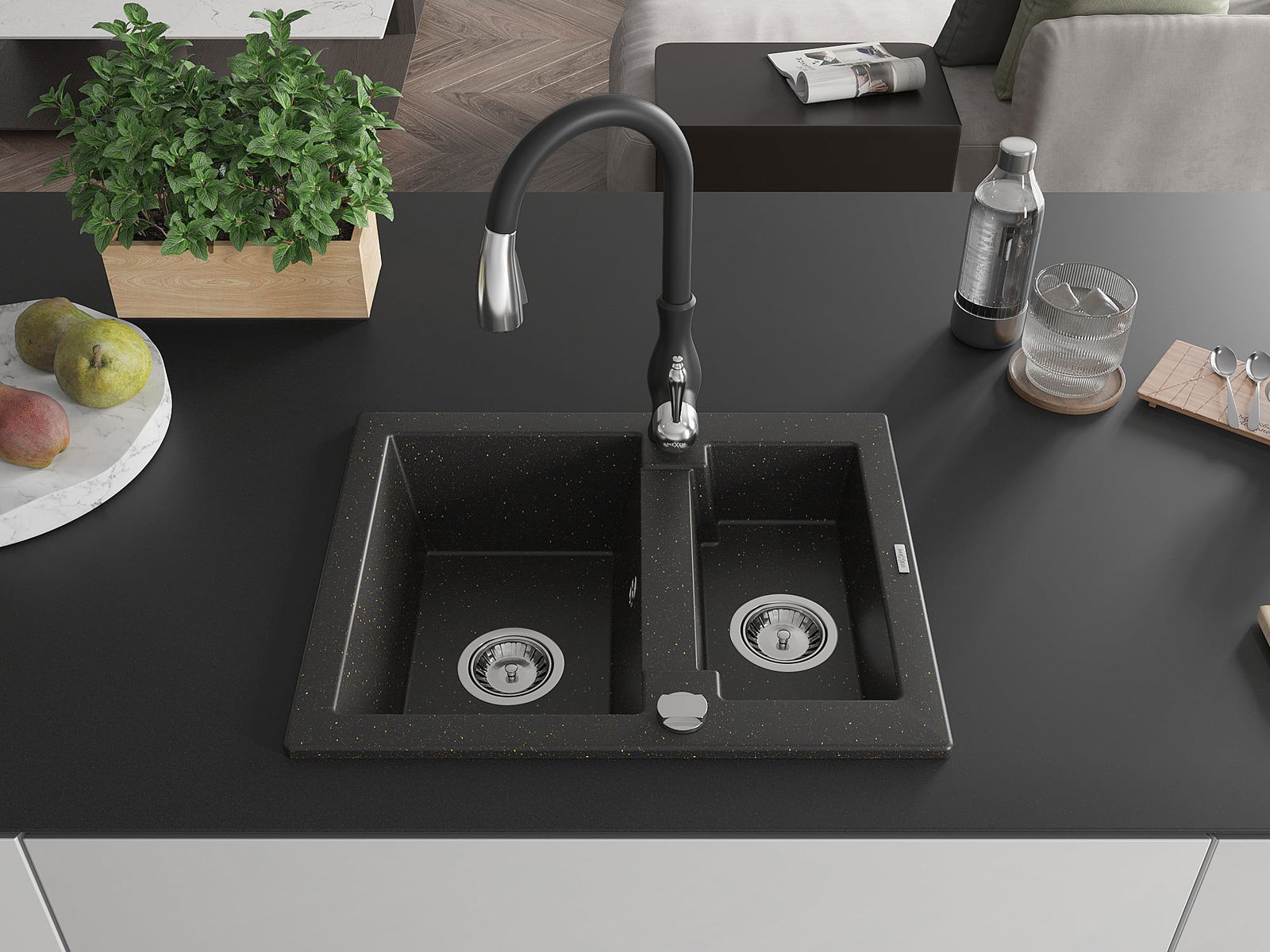 De gootsteen is gemaakt van hoogwaardig graniet. Het vormt een elegante en vooral praktische aanvulling op elke keuken, ongeacht de stijl. De hoge kwaliteit en duurzaamheid van graniet zorgen voor jarenlang gebruik.