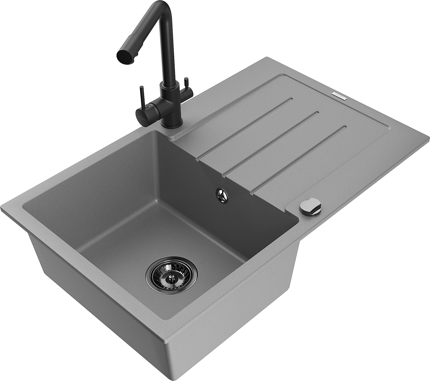 Mexen Bruno granieten spoelbak 1-komors met afdruiprek en keukenmengkraan Duero, grijs - 6513-71-671600-70-B