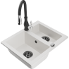Mexen Carlos granieten spoelbak 1,5-komorige met keukenmengkraan Savita, zwart gespikkeld - 6518-76-672601-70-B