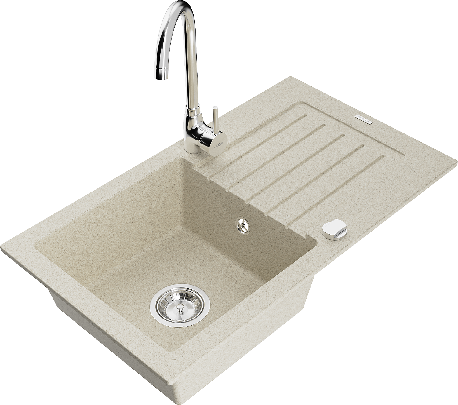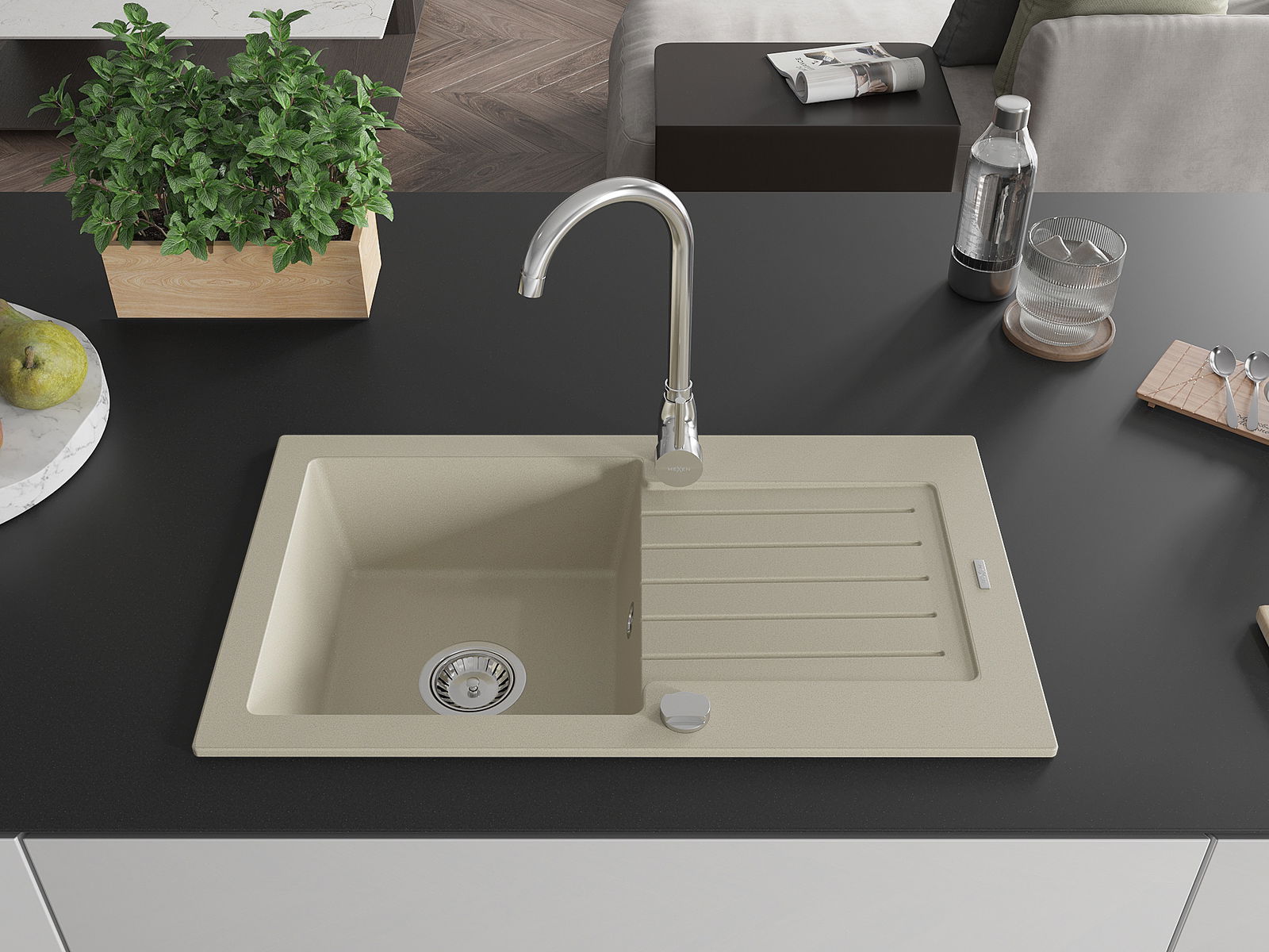 Mexen Pablo granieten gootsteen 1-kompartiment met afdruiprek en keukenmengkraan Telma, beige - 6510-69-670200-00