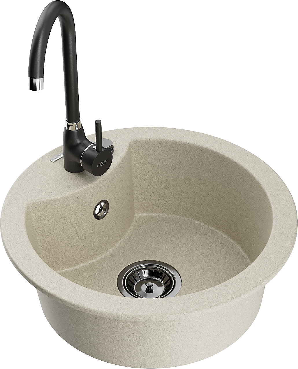 Mexen Diego granieten gootsteen 1-kommer met keukenmengkraan Telma, beige - 6512-69-670200-70