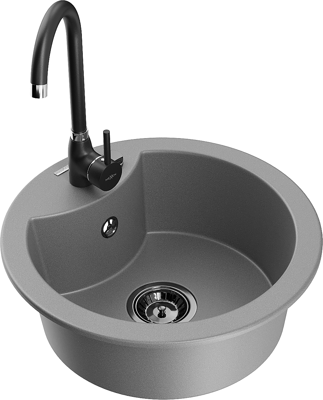 Mexen Diego granieten gootsteen met 1 compartiment en Telma keukenmengkraan, grijs - 6512-71-670200-70-B