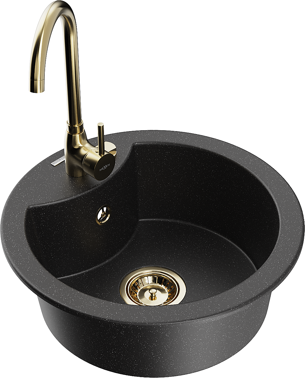 Mexen Diego granieten spoelbak met 1 bak en Telma keukenkraan, zwart/zilver - 6512-73-670200-50