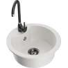 Het oppervlak van de gootsteen is bestand tegen vlekken en verkleuringen, waardoor het gemakkelijk schoon te houden is en zijn kleur behoudt gedurende een lange gebruiksperiode. Een esthetische en praktische aanvulling op elke keuken.