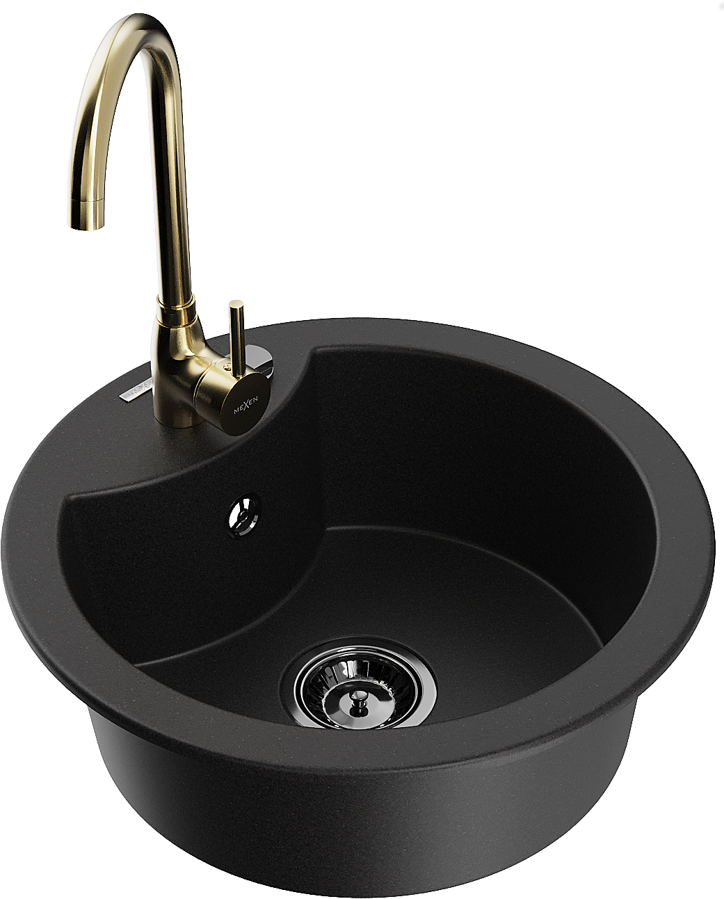 Mexen Diego granieten spoelbak 1-kompartment met keukenmengkraan Telma, zwart - 6512-77-670200-50-B