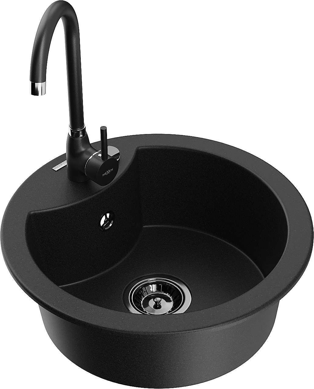 Mexen Diego granieten spoelbak met 1 bak met Telma keukenkraan, zwart - 6512-77-670200-70-B