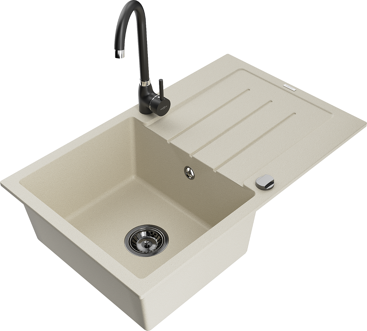 Mexen Bruno granieten spoelbak 1-komors met afdruiprek en Telma keukenkraan, beige - 6513-69-670200-70