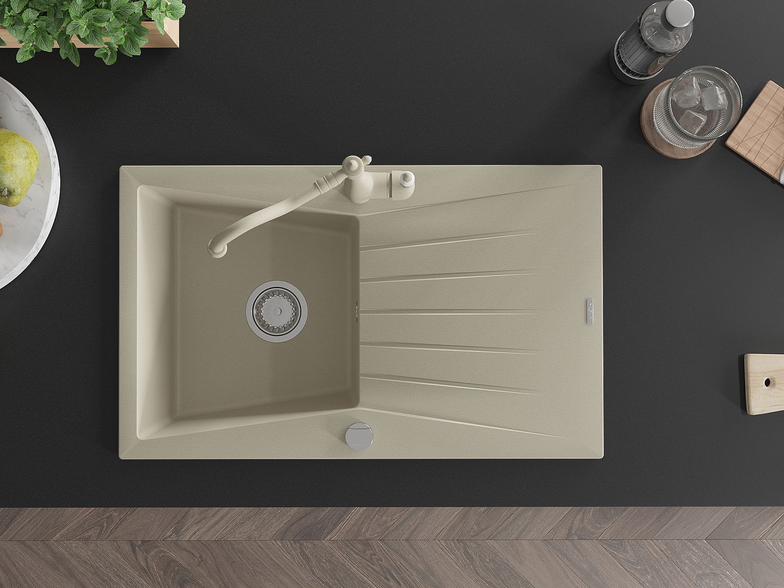 De gootsteen is gemaakt van hoogwaardig graniet. Het vormt een elegante en vooral praktische aanvulling op elke keuken, ongeacht de stijl. De hoge kwaliteit en duurzaamheid van graniet zorgen voor jarenlang gebruik.