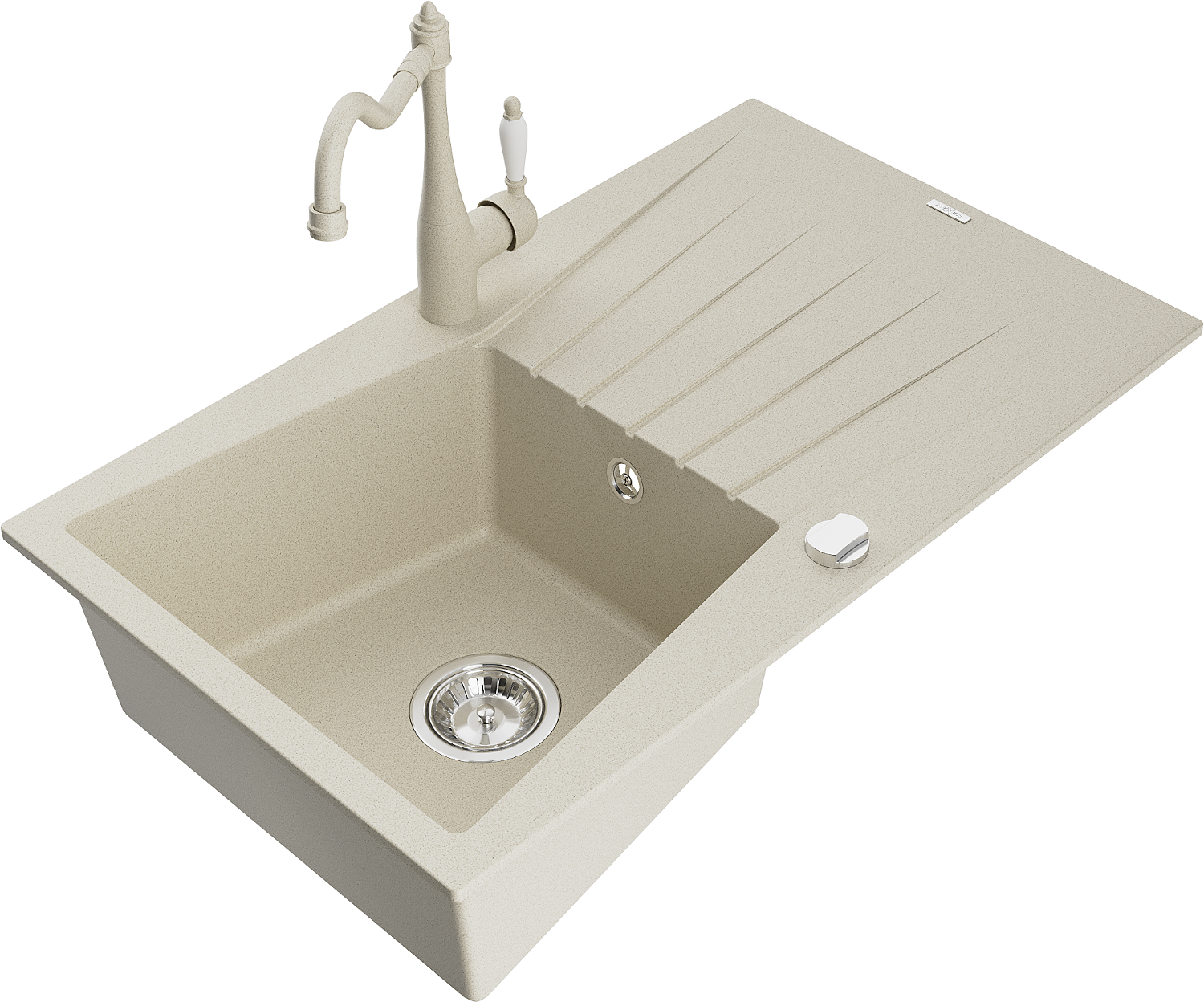 Mexen Cesar granieten spoelbak 1-kompartment met afdruiprek en keukenmengkraan Carla, beige - 6514-69-670700-69