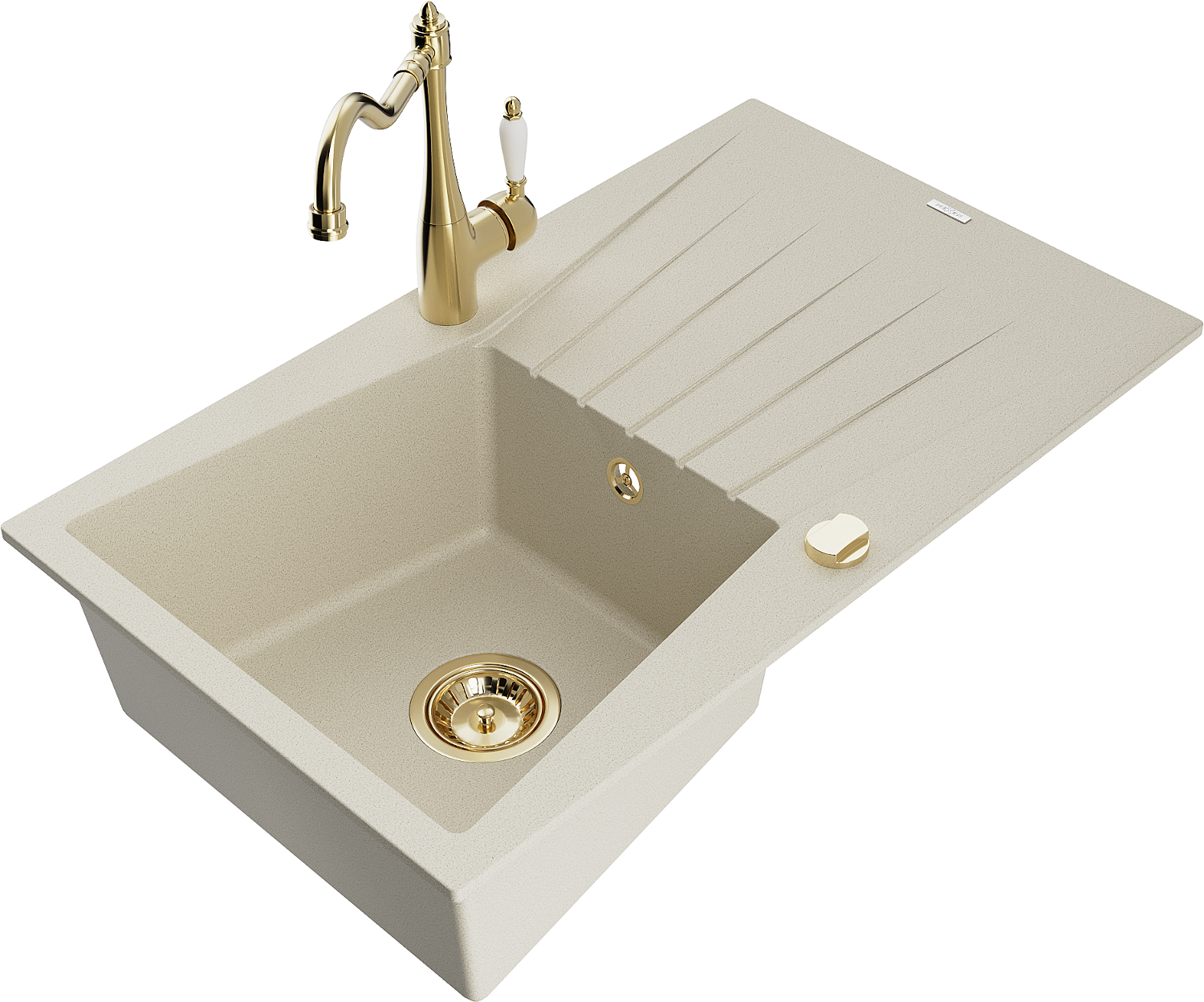 Mexen Cesar granieten spoelbak met 1 bak en afdruiprek en keukenkraan Carla, beige - 6514-69-670700-50