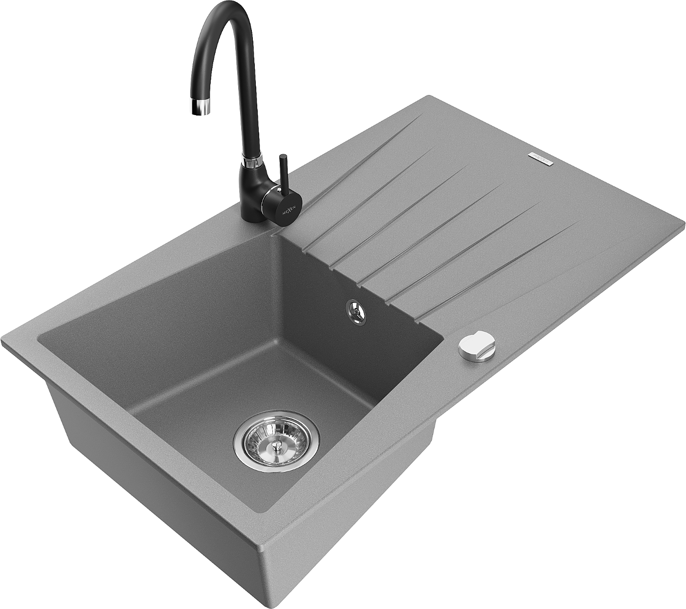 Mexen Cesar granieten gootsteen 1-komors met afdruiprek en Telma keukenkraan, grijs - 6514-71-670200-70