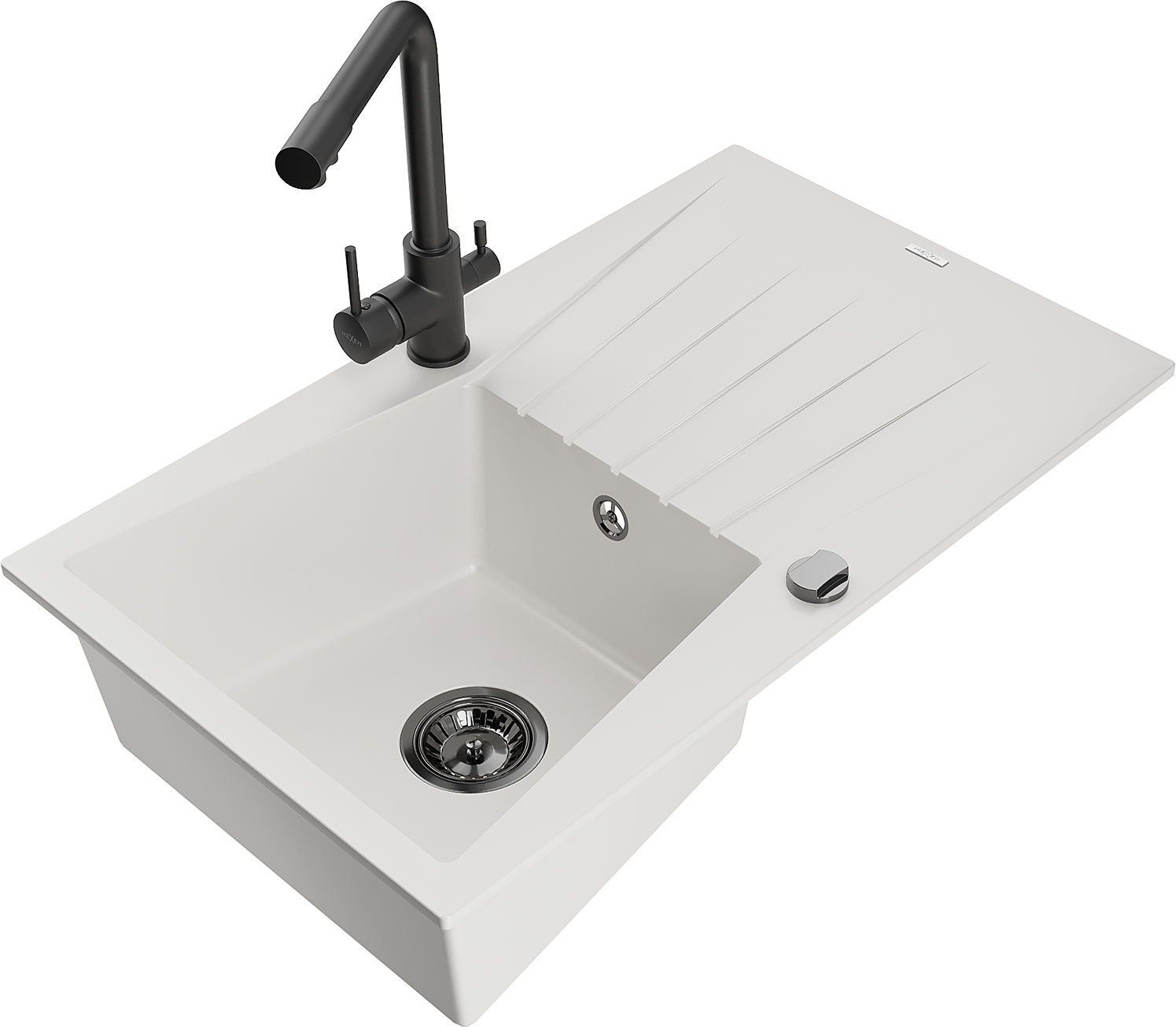 Het oppervlak van de gootsteen is zeer goed uitgehard en onderscheidt zich door uitzonderlijke weerstand tegen mechanische schade en krassen. Het duurzame materiaal zorgt ervoor dat de gootsteen er jarenlang goed uit blijft zien.