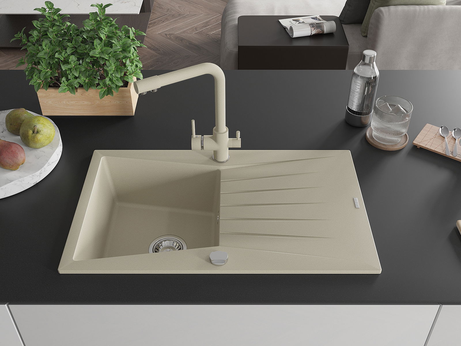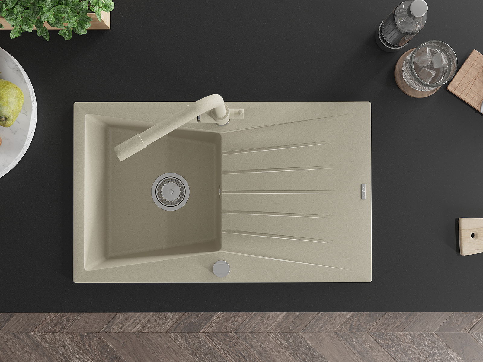 De gootsteen is gemaakt van hoogwaardig graniet. Het vormt een elegante en vooral praktische aanvulling op elke keuken, ongeacht de stijl. De hoge kwaliteit en duurzaamheid van graniet zorgen voor jarenlang gebruik.