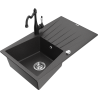 Mexen Cesar granieten spoelbak 1-komerig met afdruiprek en keuken kraan Carla, zwart - 6514-77-670700-70
