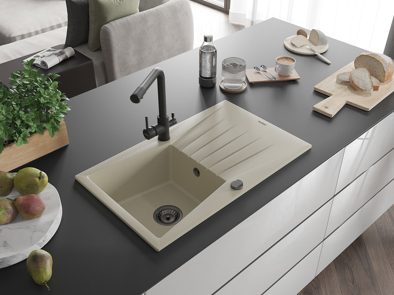 De gootsteen is gemaakt van hoogwaardig graniet. Het vormt een elegante en vooral praktische aanvulling op elke keuken, ongeacht de stijl. De hoge kwaliteit en duurzaamheid van graniet zorgen voor jarenlang gebruik.