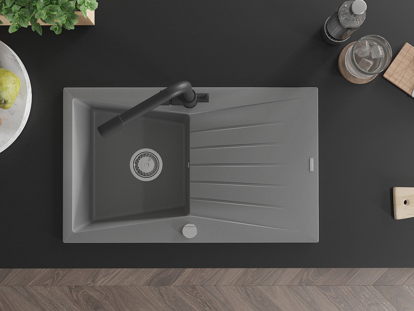 De gootsteen is gemaakt van hoogwaardig graniet. Het vormt een elegante en vooral praktische aanvulling op elke keuken, ongeacht de stijl. De hoge kwaliteit en duurzaamheid van graniet zorgen voor jarenlang gebruik.