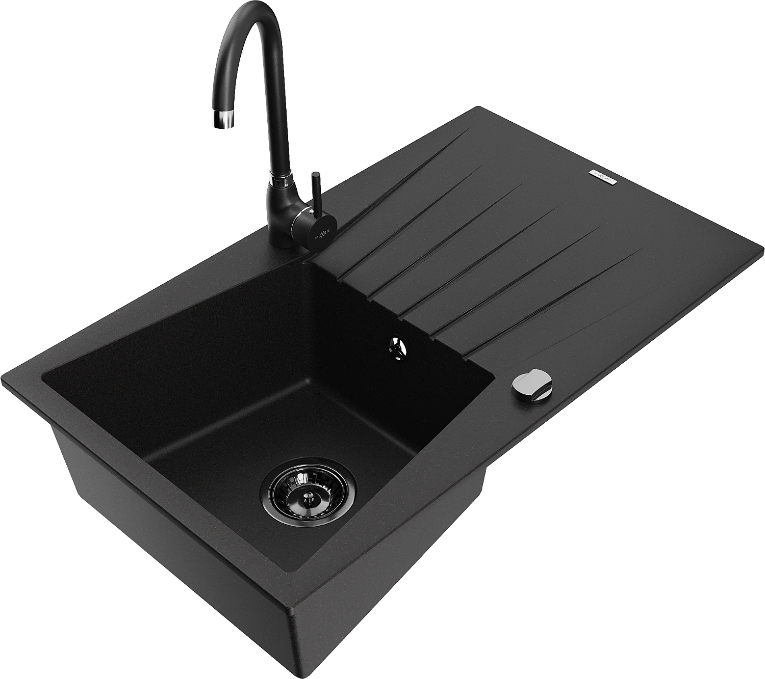Mexen Cesar granieten gootsteen 1-kompartment met afdruiprek en Telma keukenmengkraan, zwart - 6514-77-670200-70-B