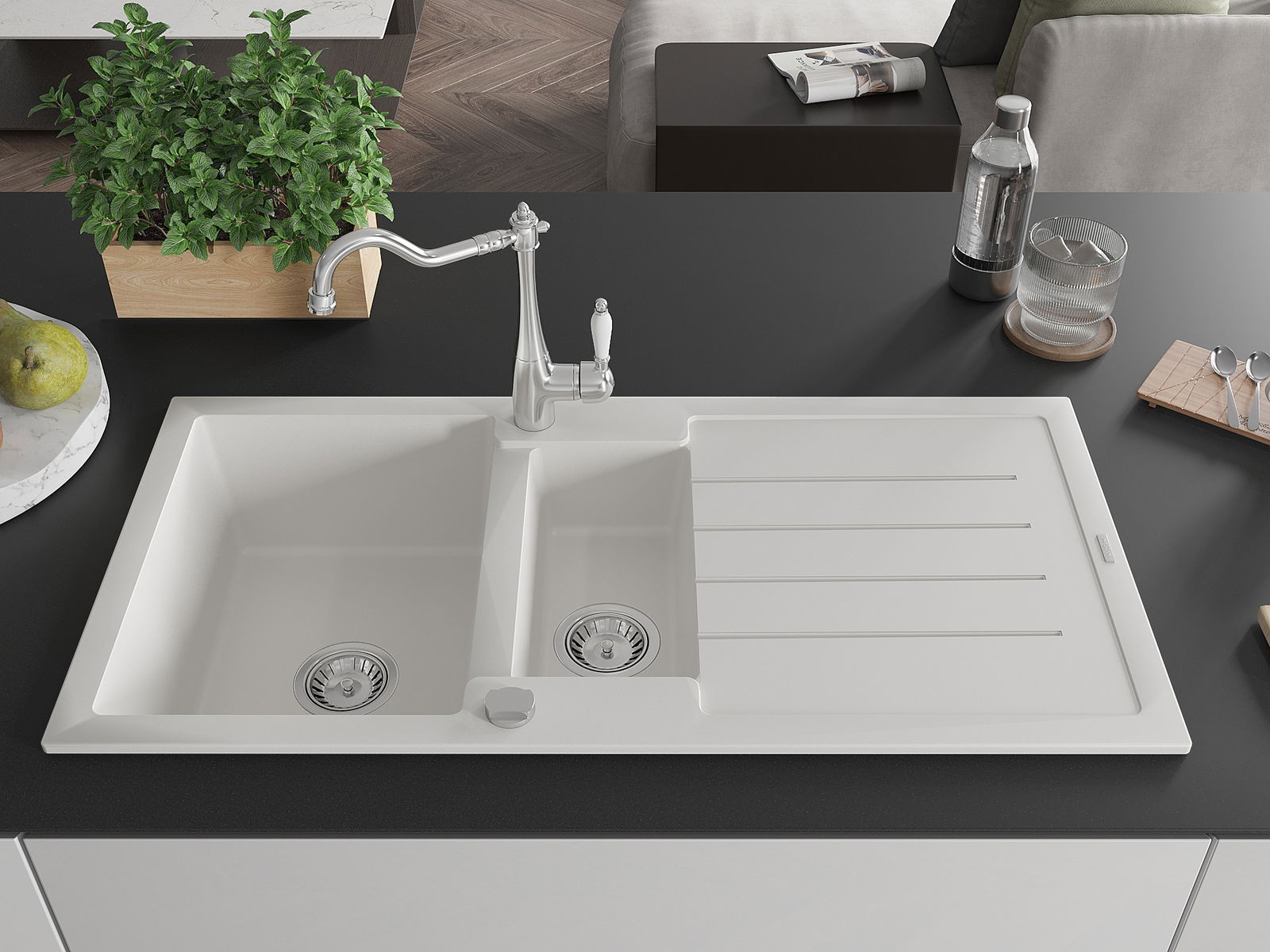 De gootsteen is gemaakt van hoogwaardig graniet. Het vormt een elegante en vooral praktische aanvulling op elke keuken, ongeacht de stijl. De hoge kwaliteit en duurzaamheid van graniet zorgen voor jarenlang gebruik.
