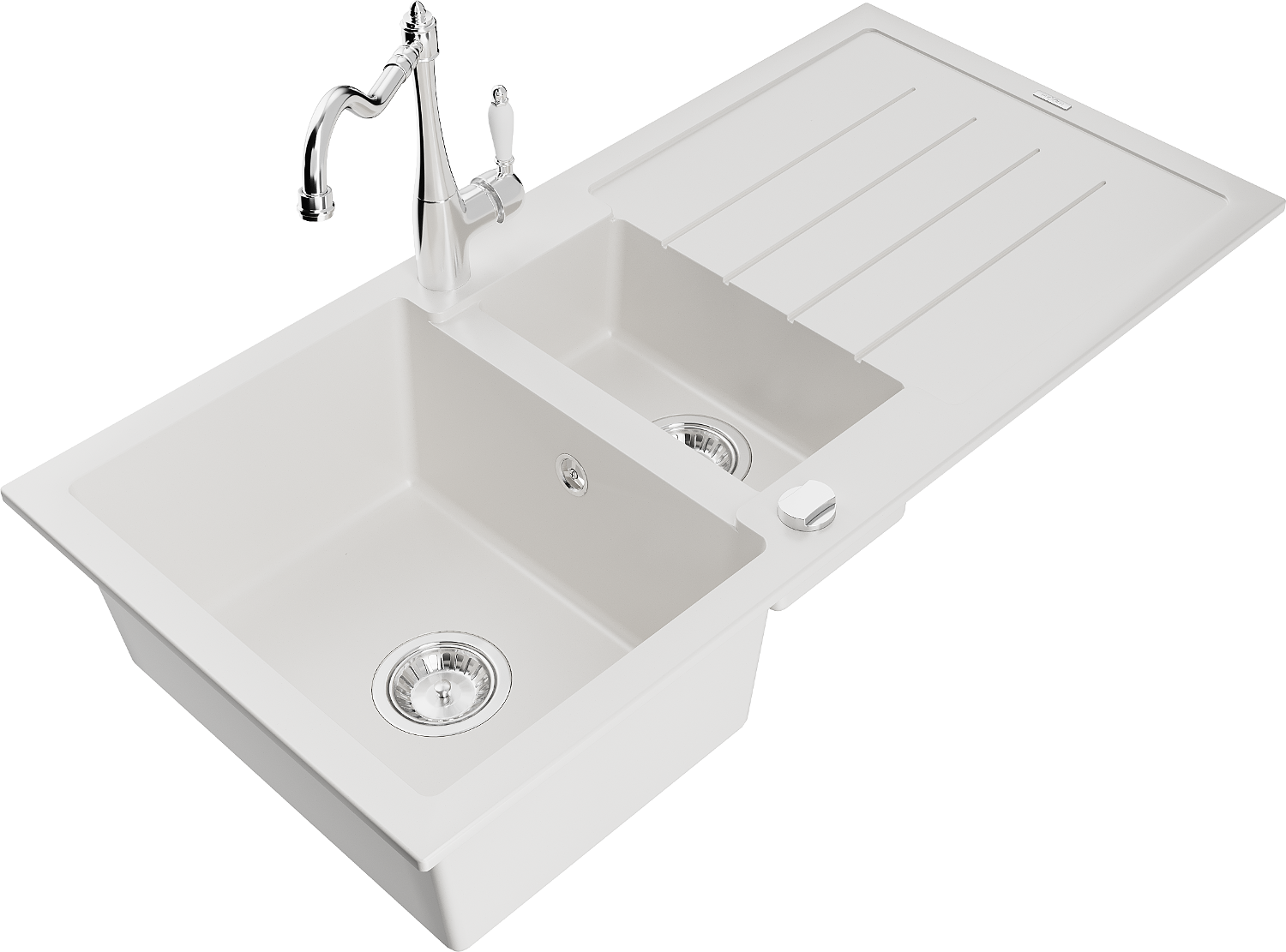 Mexen Andres granieten gootsteen 1,5-komor met afdruipplaat en keukenmengkraan Carla, wit - 6515-20-670700-00