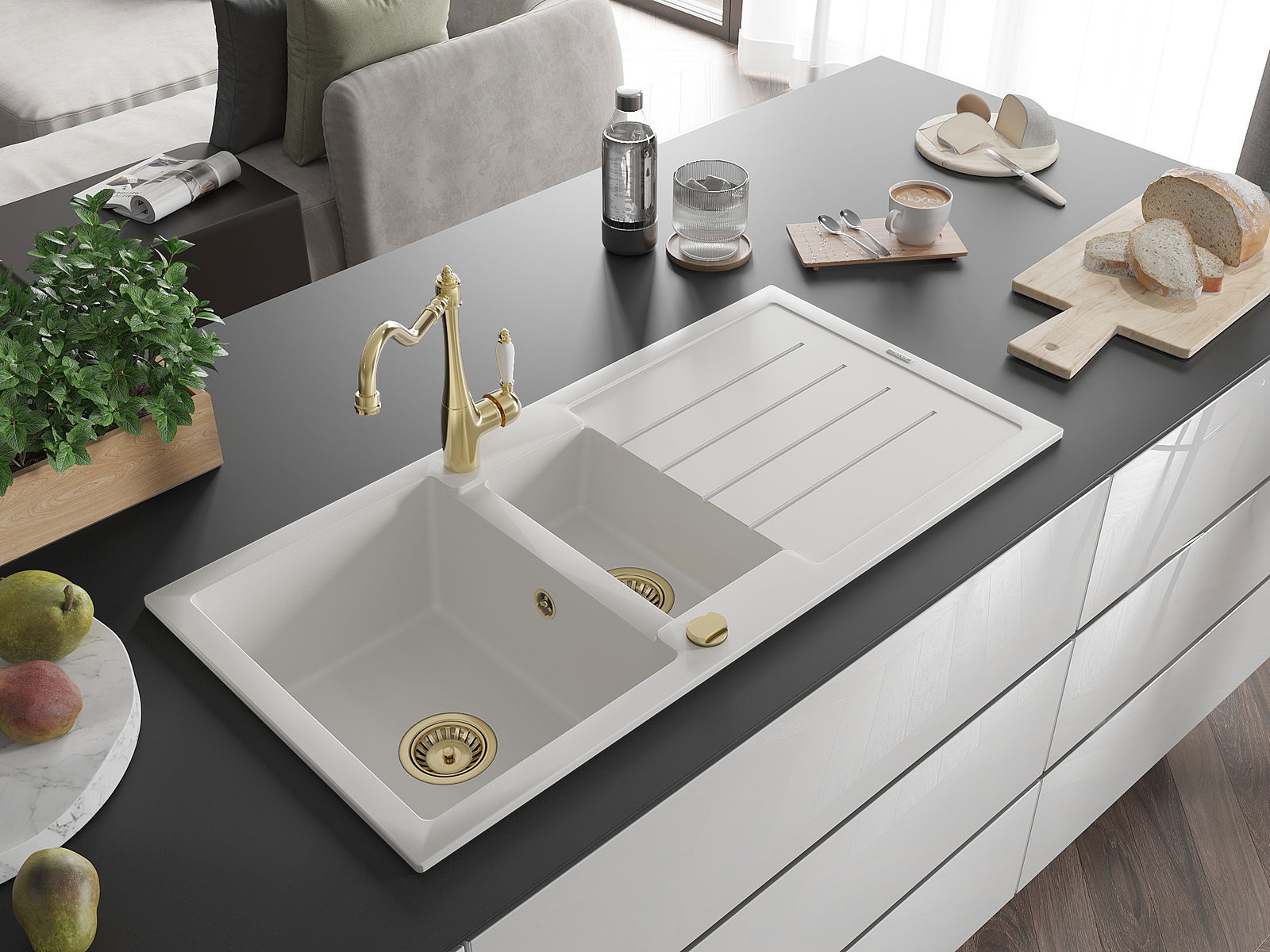 De gootsteen is gemaakt van hoogwaardig graniet. Het vormt een elegante en vooral praktische aanvulling op elke keuken, ongeacht de stijl. De hoge kwaliteit en duurzaamheid van graniet zorgen voor jarenlang gebruik.