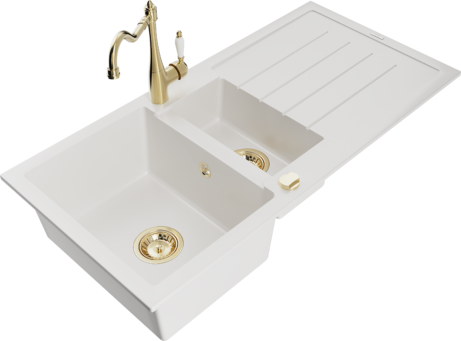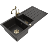 Mexen Andres granieten gootsteen 1,5-komor met afdruipgedeelte en keukenmengkraan Carla, wit - 6515-20-670700-50