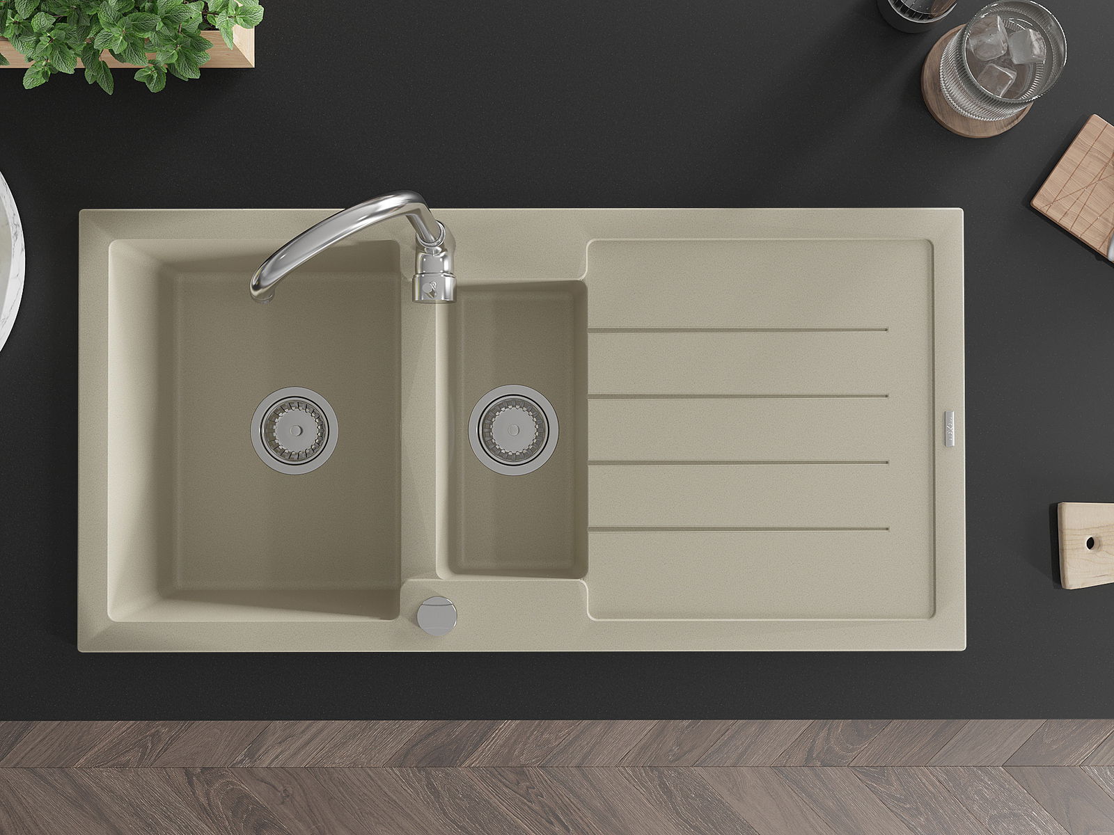 De gootsteen is gemaakt van hoogwaardig graniet. Het vormt een elegante en vooral praktische aanvulling op elke keuken, ongeacht de stijl. De hoge kwaliteit en duurzaamheid van graniet zorgen voor jarenlang gebruik.