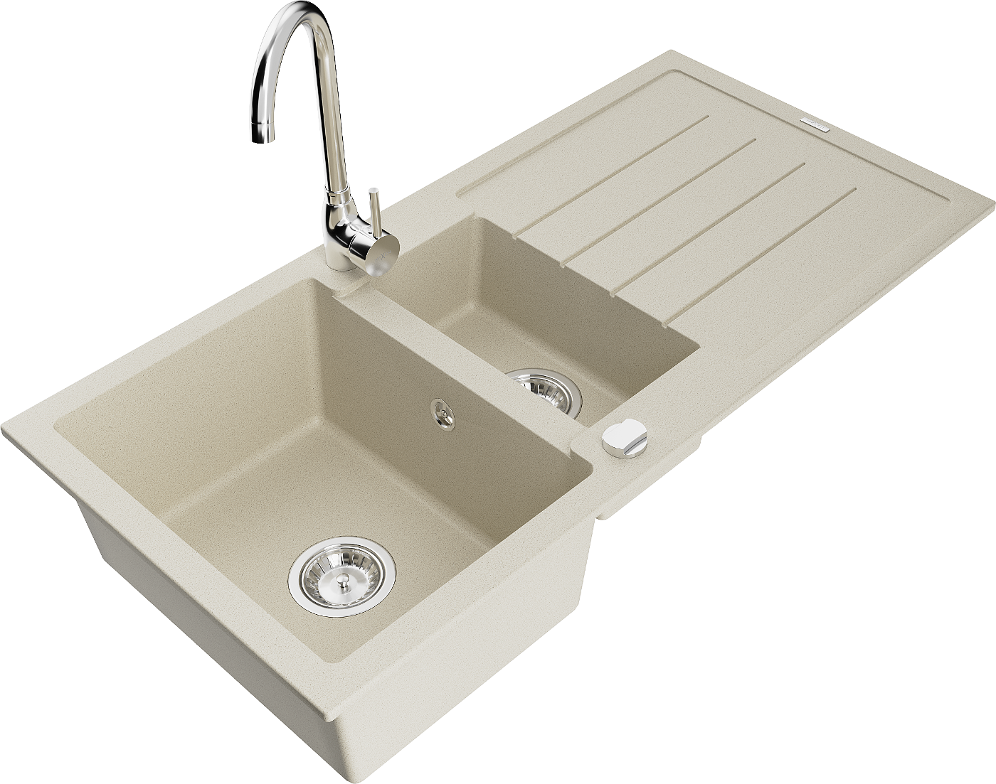 Mexen Andres granieten spoelbak 1,5-komor met afdruiprek en keukenkraan Telma, beige - 6515-69-670200-00