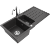 Mexen Andres granieten gootsteen 1,5-kompartiment met afdruiprek en keukenkraan Carla, grijs - 6515-71-670700-00