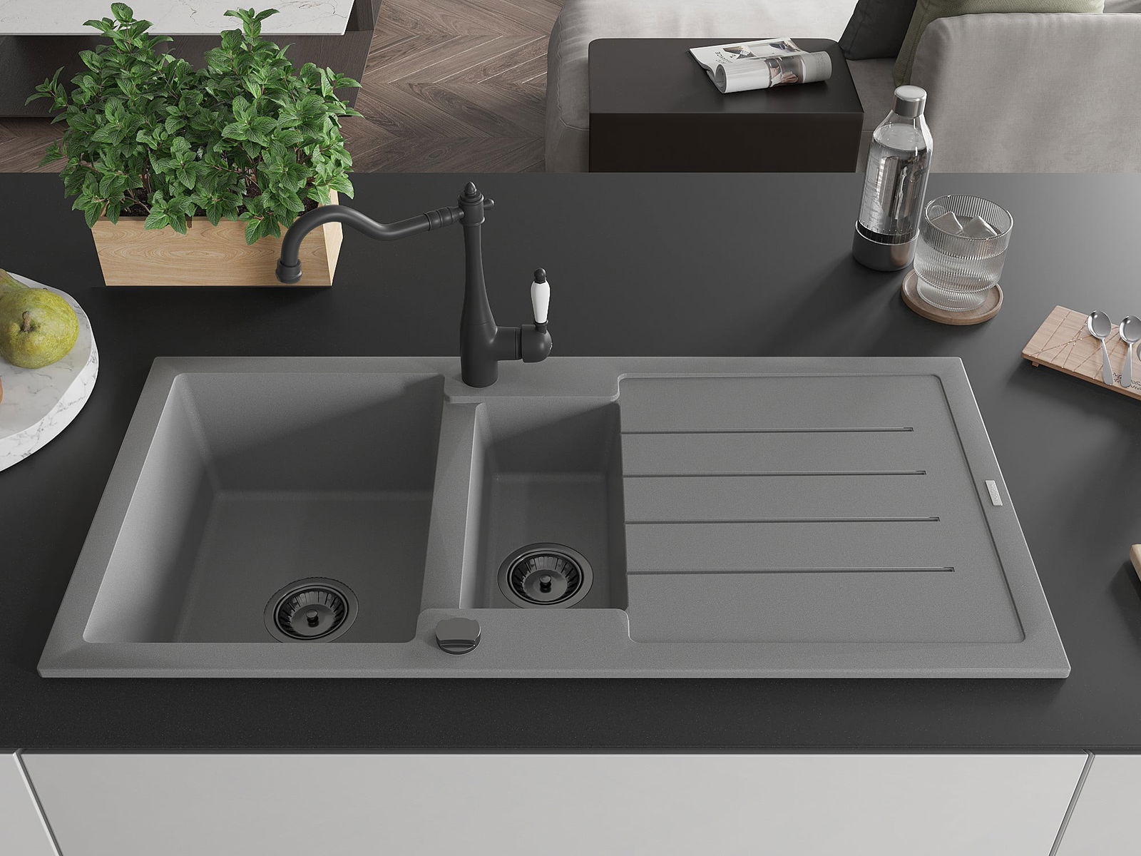 De gootsteen is gemaakt van hoogwaardig graniet. Het vormt een elegante en vooral praktische aanvulling op elke keuken, ongeacht de stijl. De hoge kwaliteit en duurzaamheid van graniet zorgen voor jarenlang gebruik.