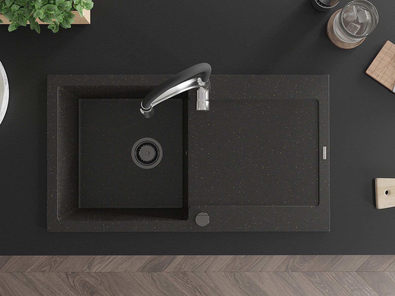 Het oppervlak van de spoelbak is zeer goed gehard en biedt een uitzonderlijke weerstand tegen mechanische beschadigingen en krassen. Het duurzame materiaal zorgt ervoor dat u jarenlang van zijn mooie uiterlijk kunt genieten.