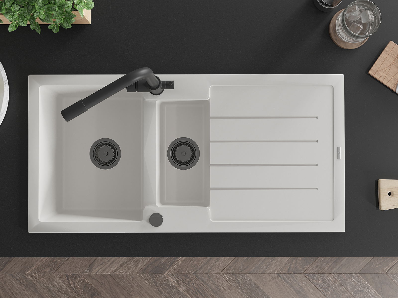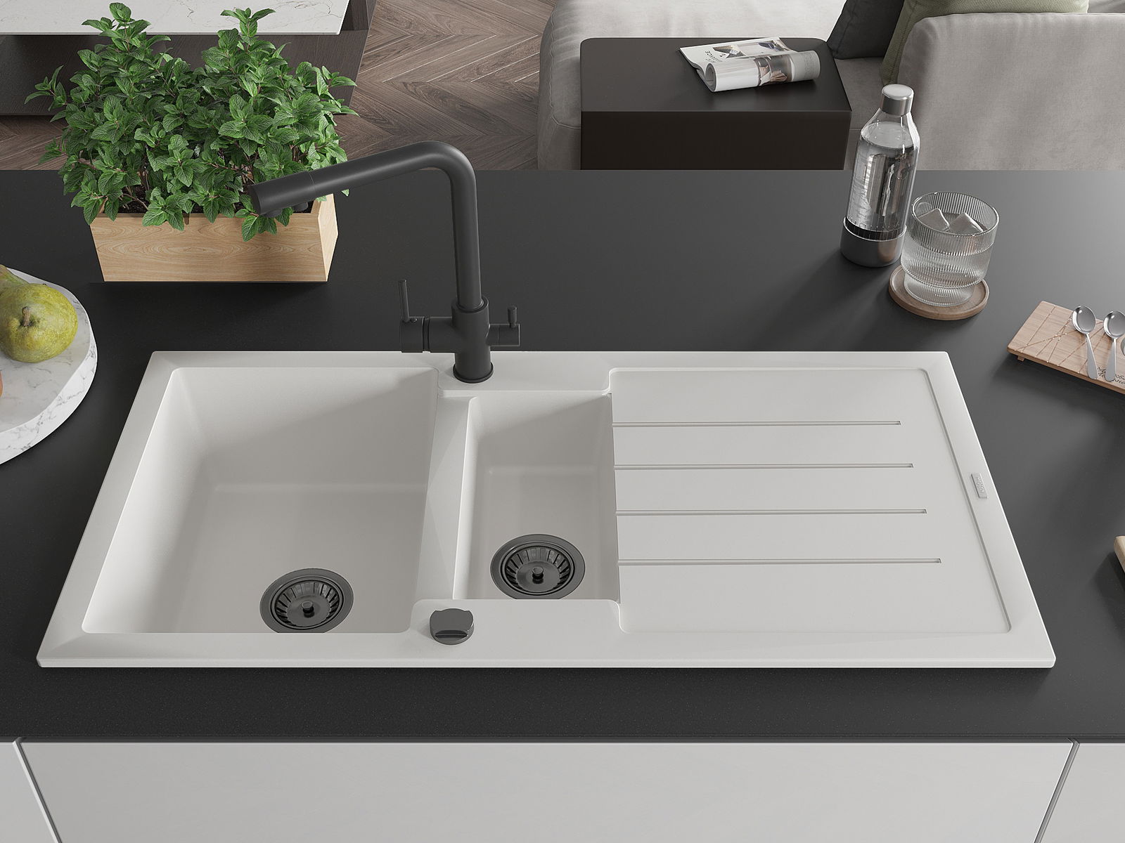 De gootsteen is gemaakt van hoogwaardig graniet. Het vormt een elegante en vooral praktische aanvulling op elke keuken, ongeacht de stijl. De hoge kwaliteit en duurzaamheid van graniet zorgen voor jarenlang gebruik.
