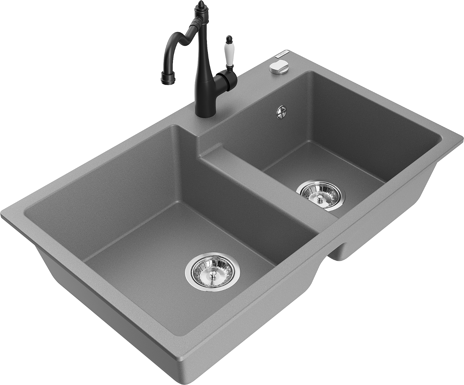 Mexen Tomas granieten gootsteen met 2 kamers en Carla keukenkraan, grijs - 6516-71-670700-70