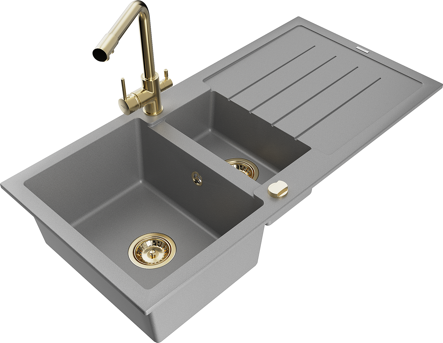 Mexen Andres granieten spoelbak 1,5-baks met afdruiprek en keukenmengkraan Duero, grijs - 6515-71-671600-50