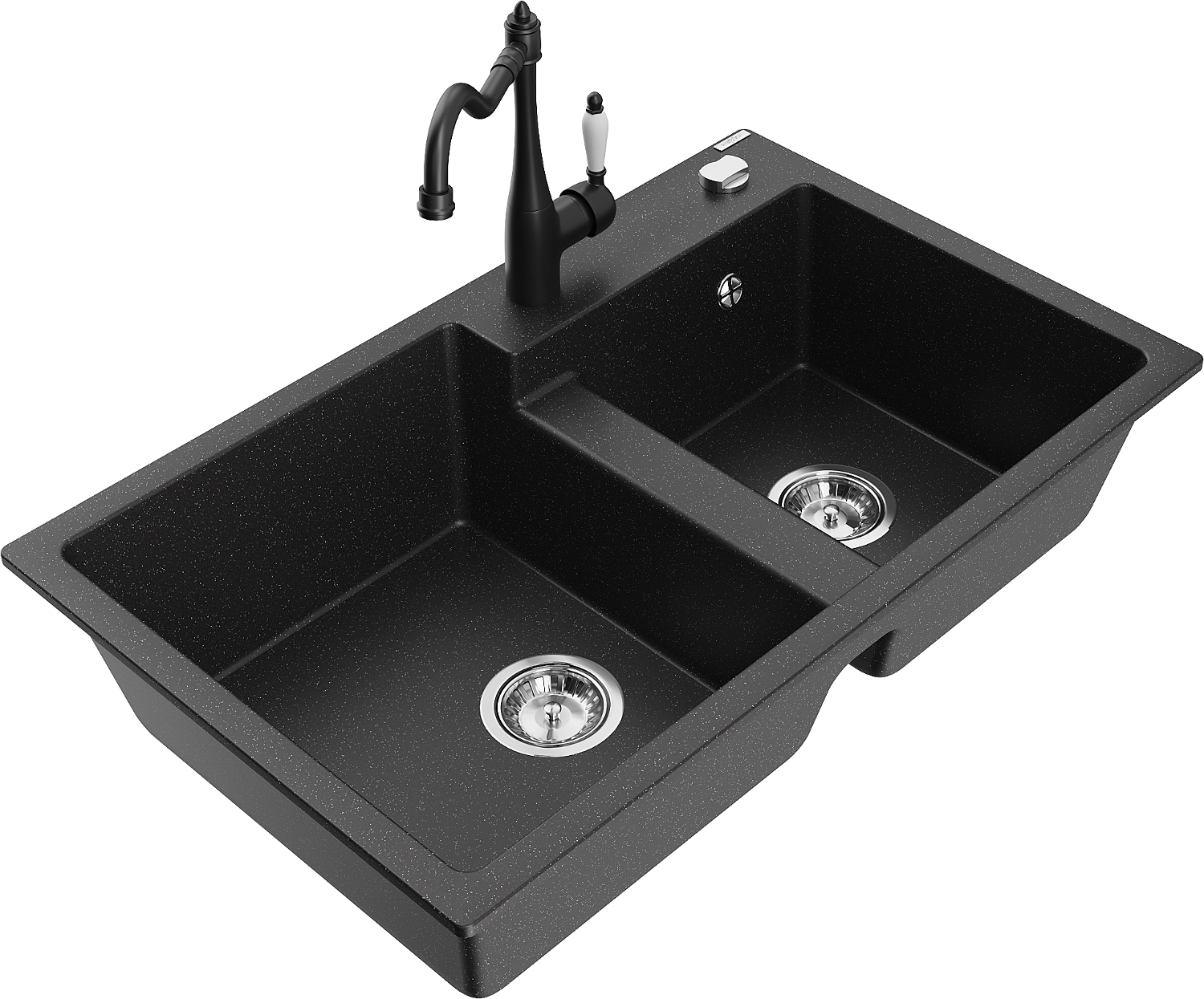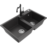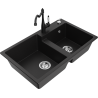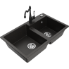 Mexen Tomas granieten gootsteen met 2 kamers en keukenkraan Carla, zwart/zilveren metallic - 6516-73-670700-70