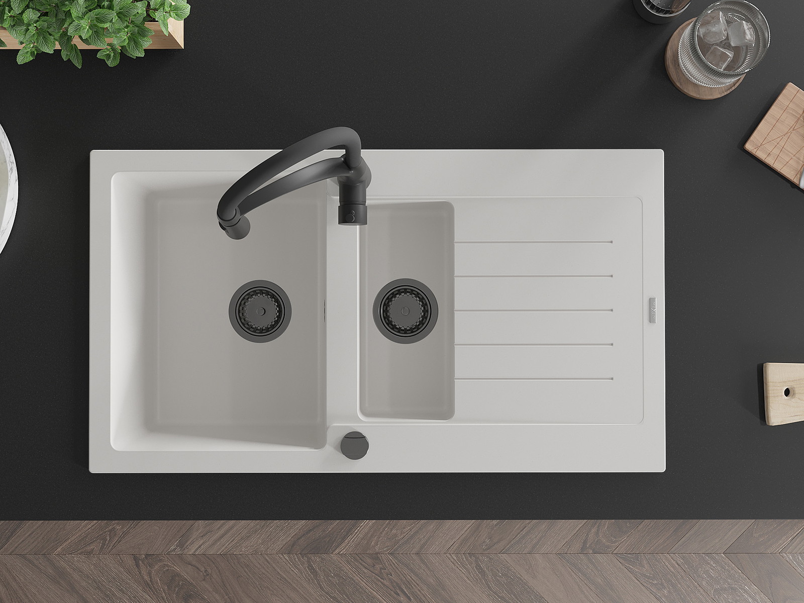 De gootsteen is gemaakt van hoogwaardig graniet. Het vormt een elegante en vooral praktische aanvulling op elke keuken, ongeacht de stijl. De hoge kwaliteit en duurzaamheid van graniet zorgen voor jarenlang gebruik.