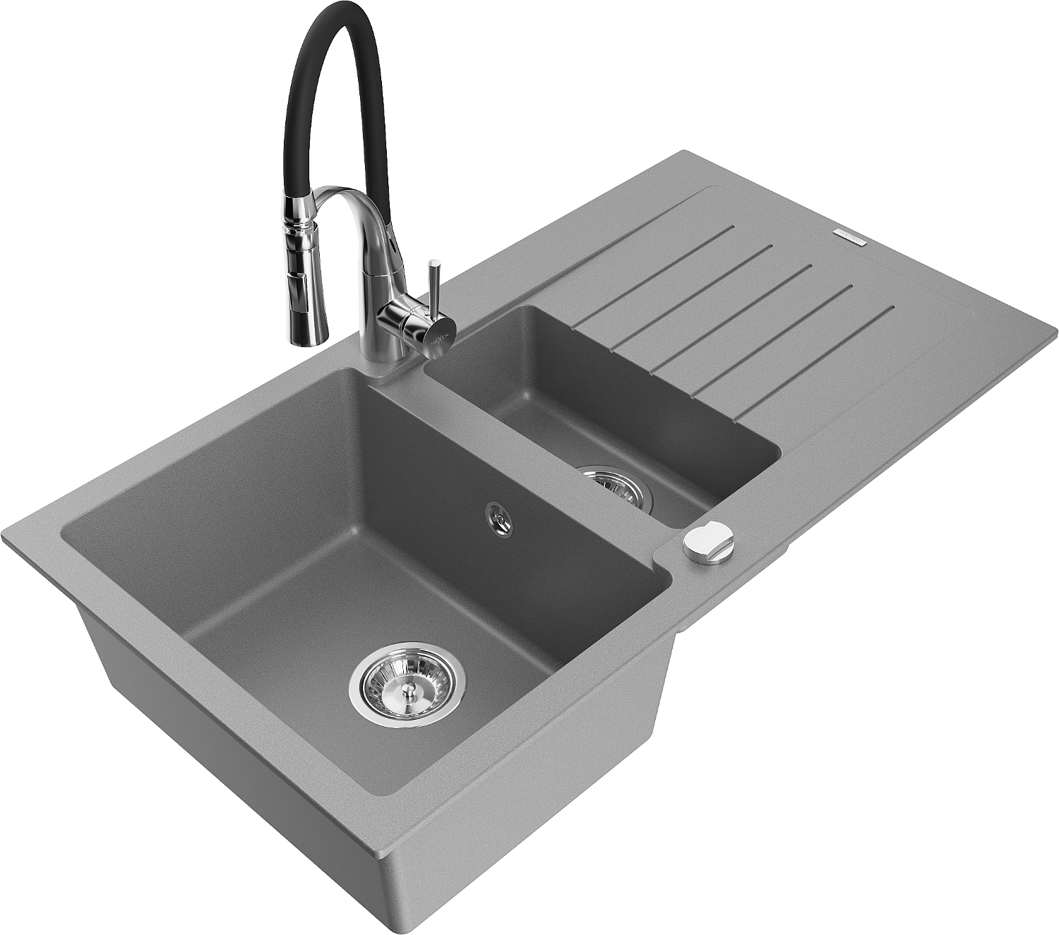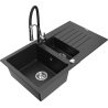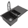 Mexen Matias Granieten Spoelbak 1,5-compartiment met Afdruiprek en Keukenkraan Aster, grijs - 6502-71-73450-07