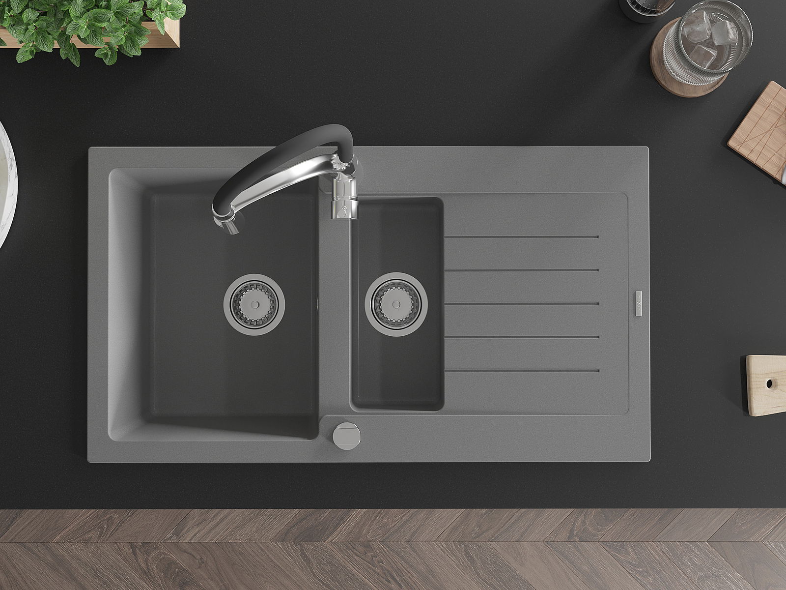 De gootsteen is gemaakt van hoogwaardig graniet. Het vormt een elegante en vooral praktische aanvulling op elke keuken, ongeacht de stijl. De hoge kwaliteit en duurzaamheid van graniet zorgen voor jarenlang gebruik.