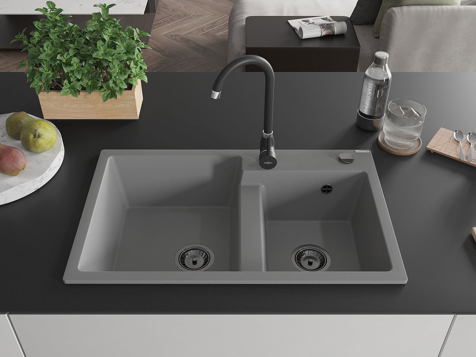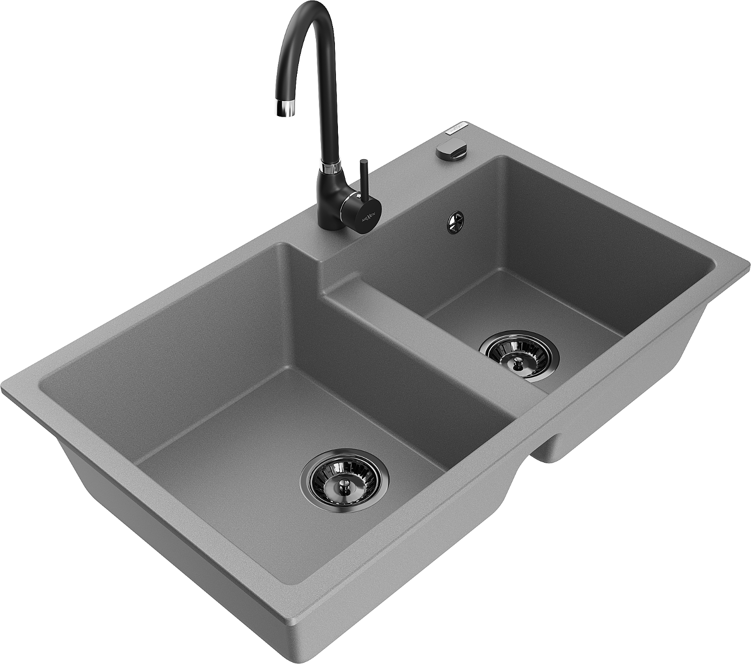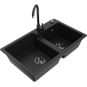 Mexen Tomas granieten gootsteen 2-kamer met keukenkraan Telma, grijs - 6516-71-670200-70-B